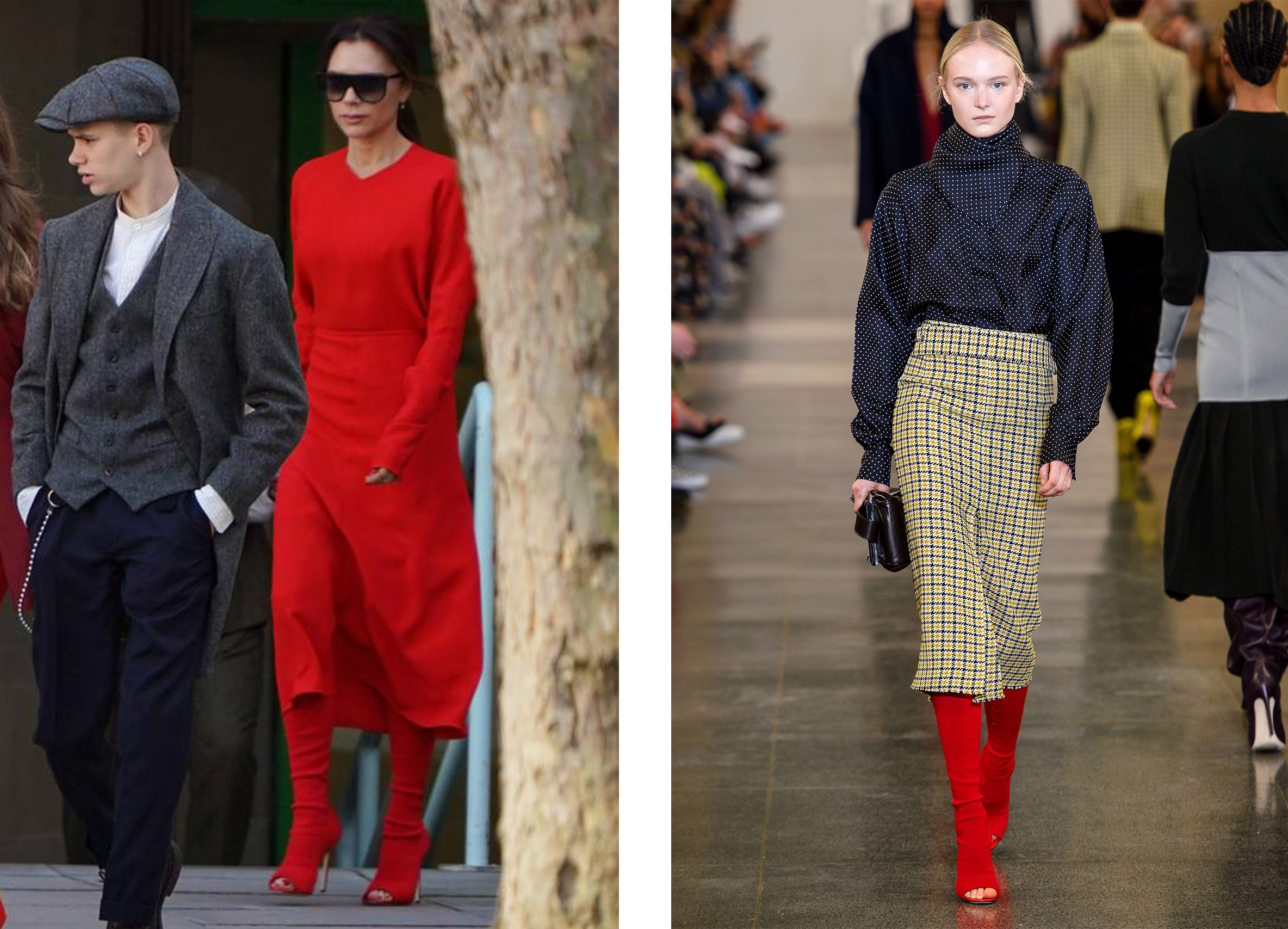 而 Victoria 本人也很迷恋这款鞋子,在开秀前就穿着出街,让我们得以提前窥见她的新系列,开口的设计让整体的造型不至于显得太沉闷和透不过气。无论是搭配休闲的中长裙和羊毛套头衫,还是通勤穿的套装和时髦的黑色晚礼服,都能跟这双露趾长筒靴产生奇妙的化学反应。
