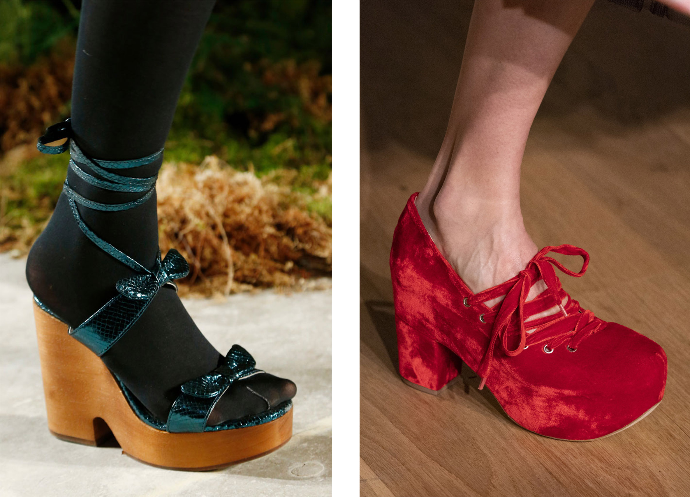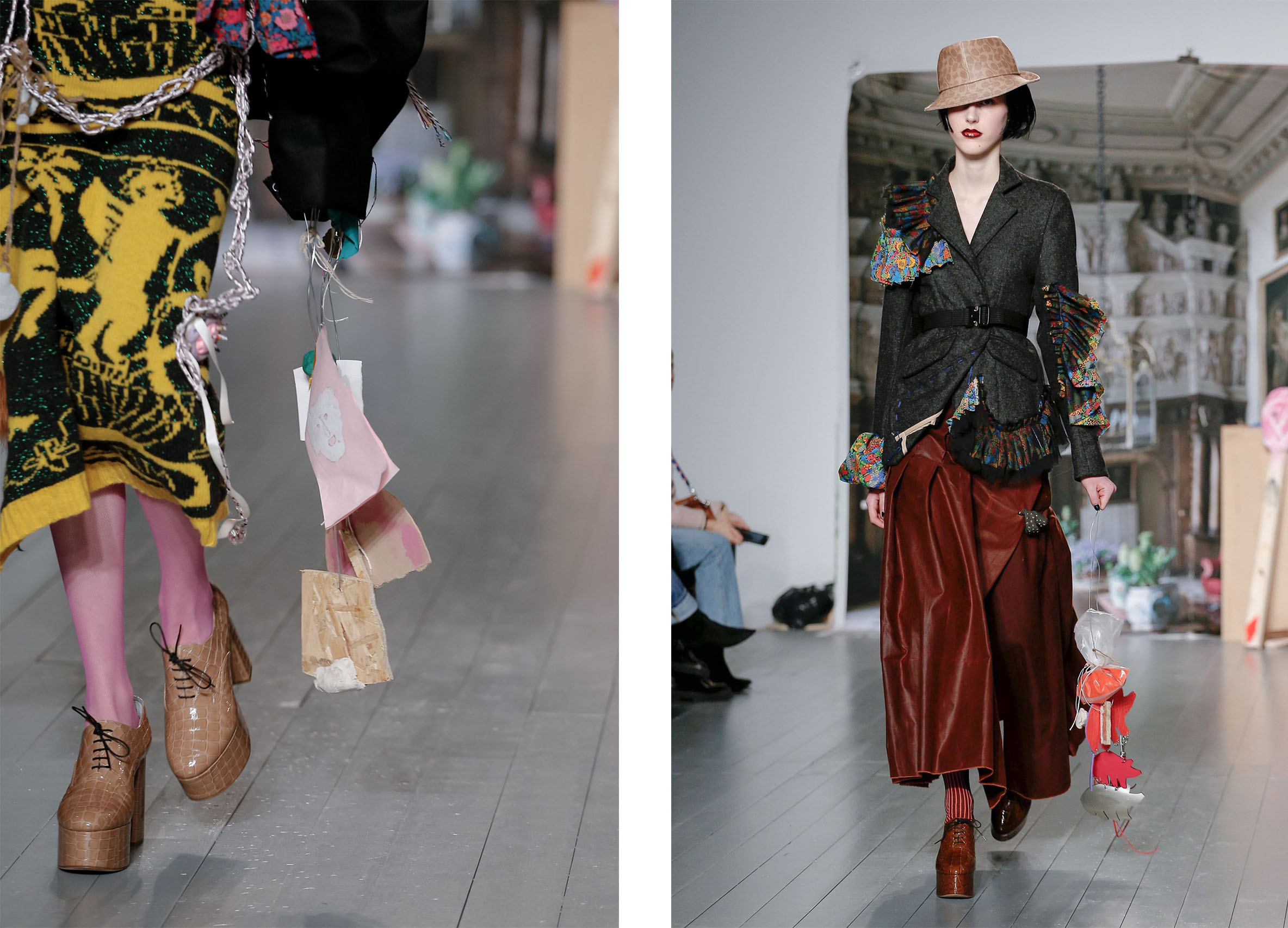 在本季秋冬时装周上,「卷土重来」的防水台被赋予了更多样的形式,比如品牌 Halpern 的糖果色和条纹金属质感,Matty Bovan 的压纹印花,Alexa Chung 的蝴蝶结绑带,都给我们带来了不一样的新鲜感。03