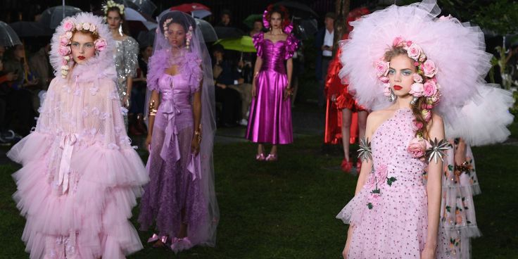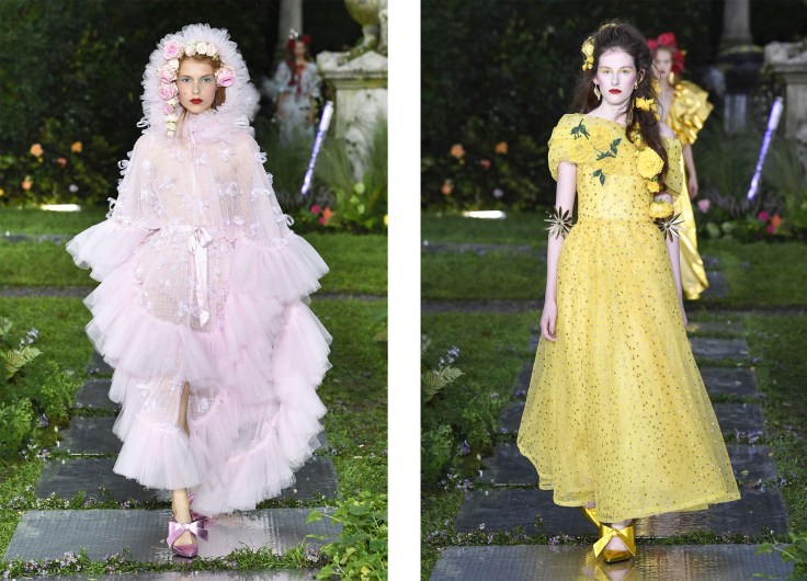 Rodarte 2019 秋冬系列发布会,Mulleavys 姐妹再次将观众们带到了洛杉矶的另一座花园中,呈现了大量层叠的薄纱、蝴蝶结、刺绣和花朵等率真又不失浪漫的元素。