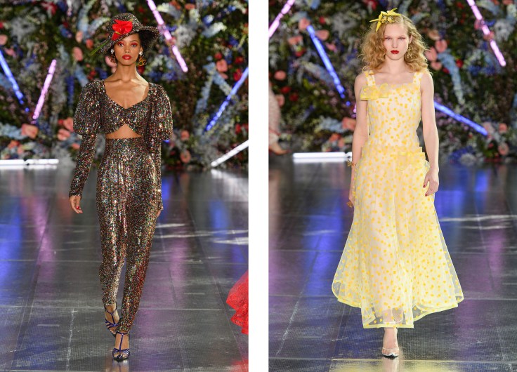 她们还从上世纪30年代至70年代的好莱坞音乐剧中汲取灵感,增加了亮片和高饱和度的色彩,打造了一场如梦似幻的时装盛宴。